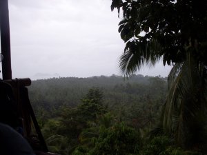 Hát reggel mikor felébredtem nem akartam elhinni, hogy ez velem történik! Meseszép… fent a fatetejéről látom a tenger, a szembelévő Nemzeti Park szigeteit és amerre nézek pálmafák és boldogság belélegezni párás esős virág illatot.
